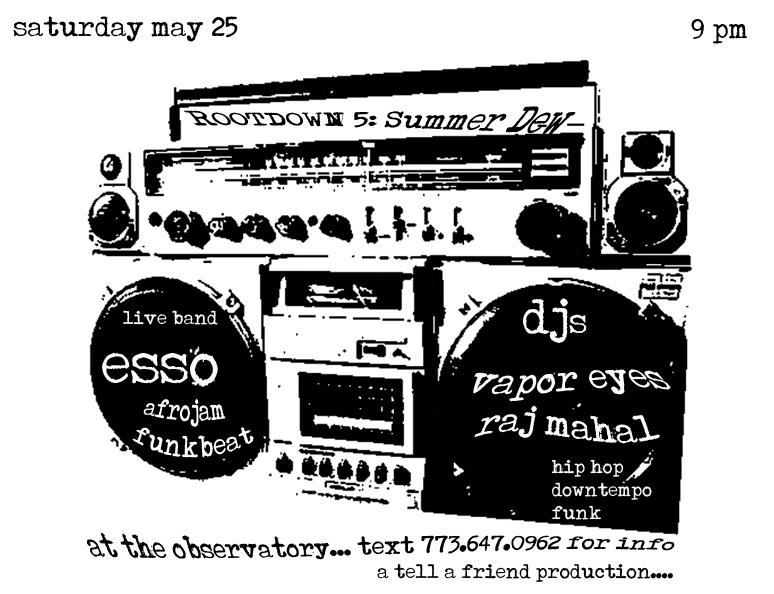 Catch me and Raj Mahal representing Push Beats at The Observatory this Saturday, May 25th for Rootdown 5ive! Also performing is afrobeat funk group Esso. Check the FB event page for further info on this Memorial Day weekend loft party banger.