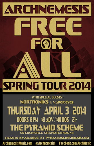 Tonite (4/3) its goin down at The Pyramid Scheme in Grand Rapids, Michigan! Catch Young Heavy Souls labelmate Nortroniks and I opening for Archnemesis. Feels good to be back in the Mitten for a 2 nite run of shows.