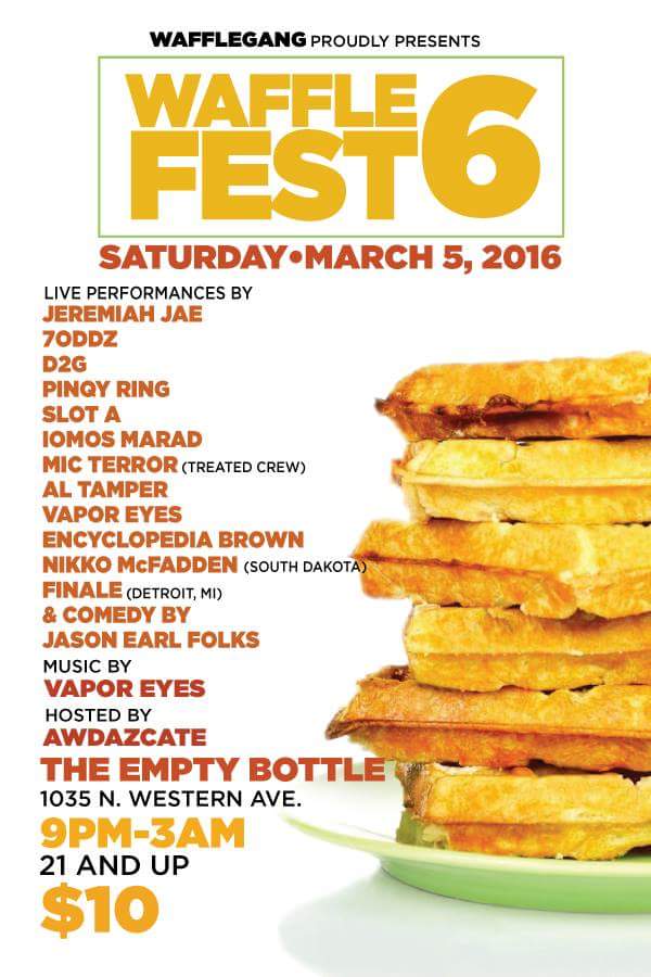 This Saturday and The Empty Bottle in Chicago..its Waffle Fest 6! Glide through for a dope nite of hip-hop, beats and waffles.
