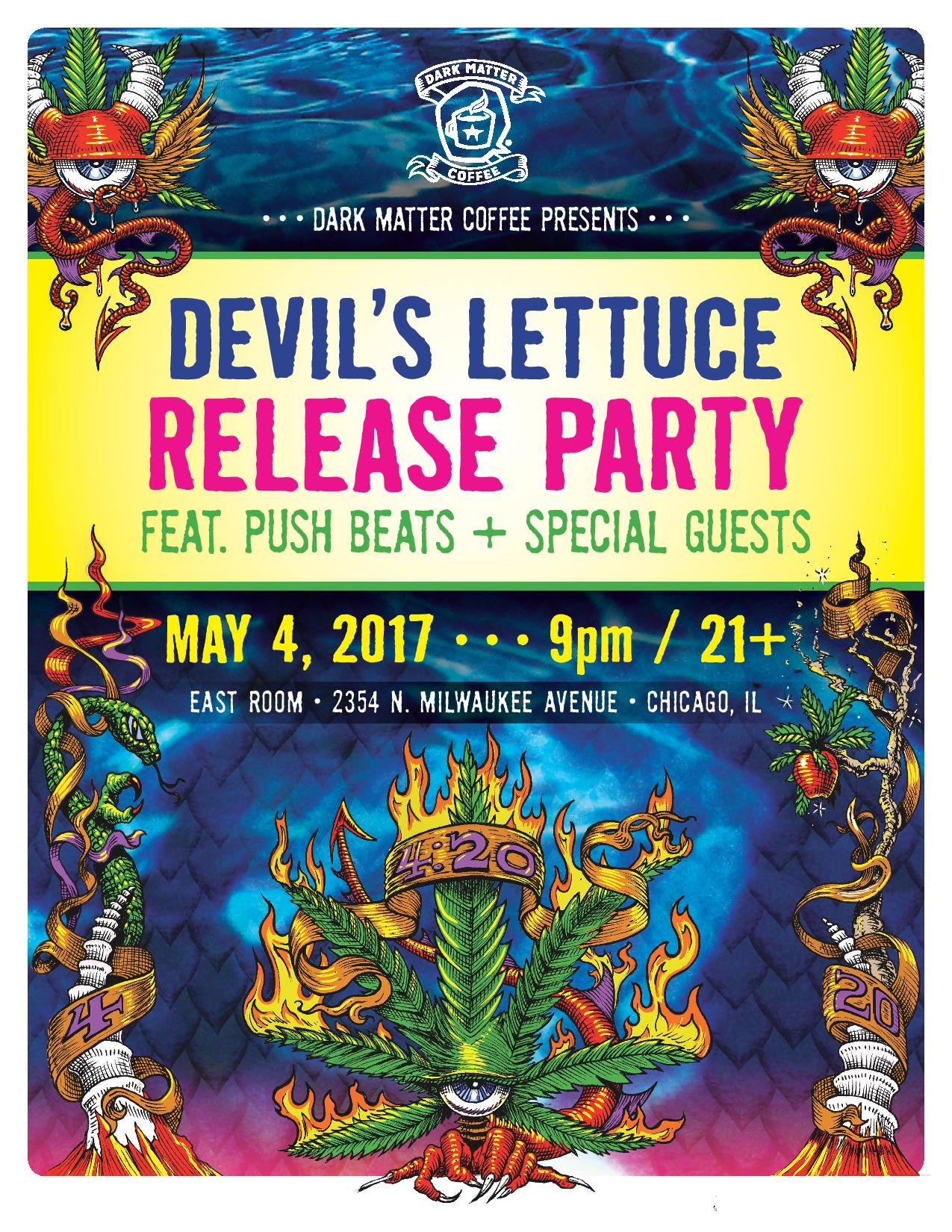 This Thursday, May 4th.. Dark Matter Coffee presents the Devil’s Lettuce release party featuring Push Beats + friends. The musical companion to their latest blend was a beat tape featuring the Push Beats crew which can be streamed in full here. Thursday’s show at East Room will have limited edition cassettes available!